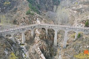 群英渡槽(济南红旗渠)长达百米,高四十米,是一条上可行人下可走水的两用桥。我们的先民们自古逐水而居,70年代,柳埠公社调动附近六十多个村的壮劳力,开山劈石,愚公移山,奋战两年时间修筑而成,成功将黄巢水库的水引入周边的山村。
