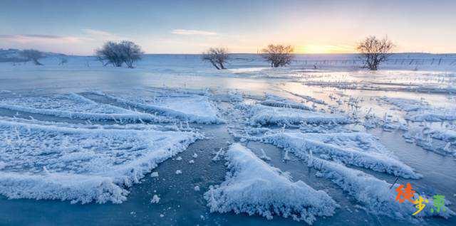 辽阔的草原万里雪飘,银装素裹,如烟如纱的雾凇、幽静的白桦林…柔软起伏的雪原上没有一个脚印,大步行走在辽阔的雪原上,仿佛天地间只有自己!这极致的草原纯白仙境,给人一种荒寂旷世的美。