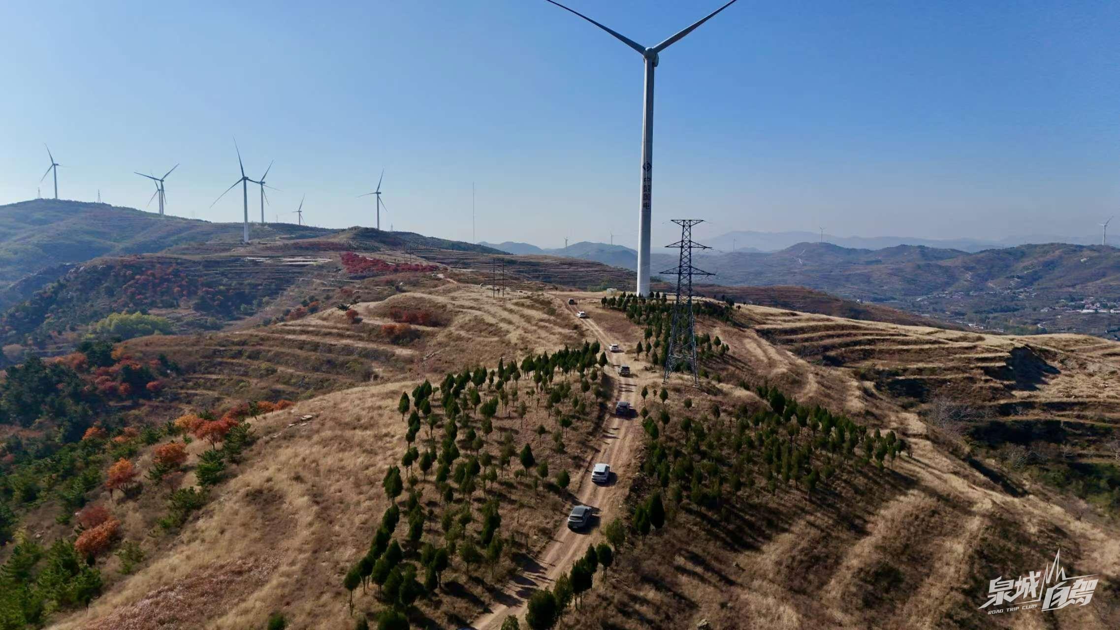 西山寨风车天路位于长清区东南,是一片站满了风车的高大山梁,山路连绵十多公里,一个个钢铁怪兽伫立在山巅,串联成一条颜值颇高的风车天路。山顶整体平阔,站在山顶极目远眺,远处连绵的群山仿佛铺展在眼前的一幅美丽画卷,看了便觉舒心。山顶开阔处多,停车方便,可以自行选择停车玩耍。